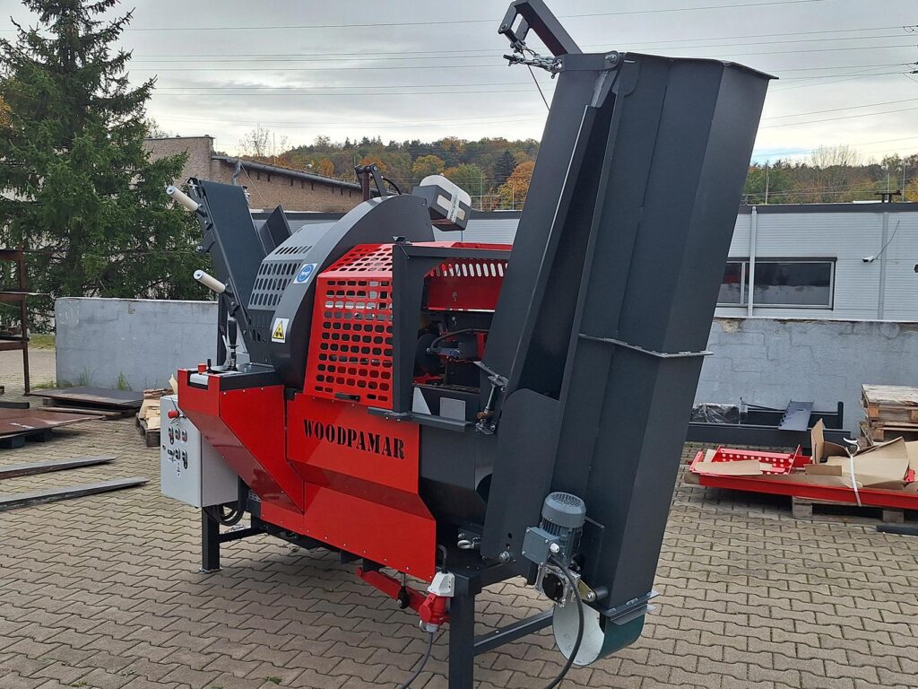 SSP42-EP je automatski stroj za pripremu ogrjevnog drva u velikim količinama. Ovaj uređaj kombinira rezanje drva motornom pilom, cijepanje i prijenos na hrpu pomoću transportne trake u jednom radnom ciklusu.