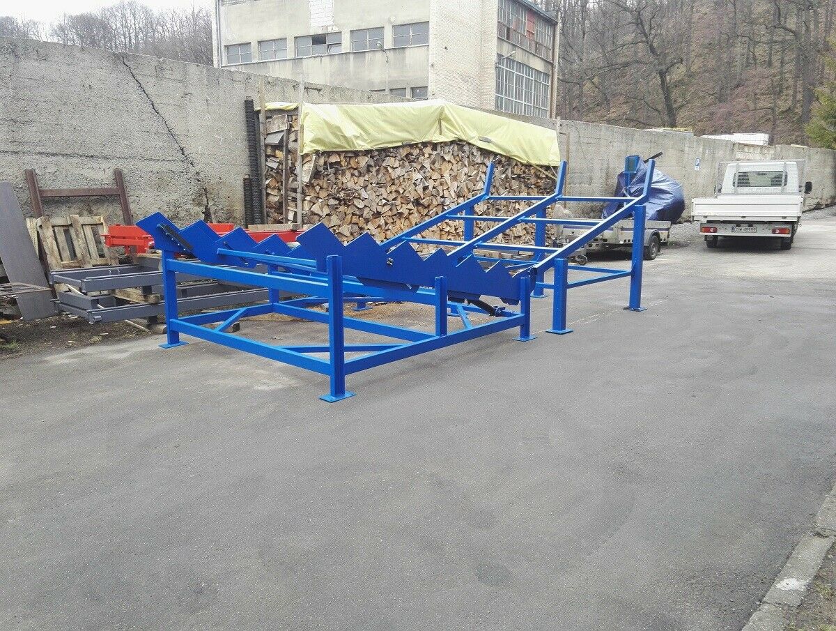 Stepenasti dodavač koristi se za transport trupaca do različitih strojeva (pile-cjepača, tračnih pila ili sjekača), uz istovremeno podizanje trupca na zadanu visinu.